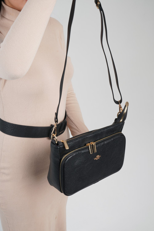 کیف دخترانه 3زیپ بسیار کارآمد، طراحی به روز با ترکیبی بینظیر هم دوشی هم حمایلی دارای بند کوتاه چرمی ویک بند بلند
